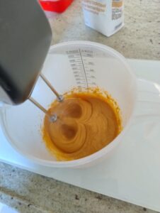 Begin met de browned butter. Smelt de boter in een pannetje. Wanneer de boter volledig gesmolten is, blijf je verder roeren. Op een gegeven moment gaat de boter beginnen schuimen, dit is normaal. Wanneer het schuimen wat vermindert ga je zien dat de kleur van je boter verandert en er lichtbruine spikkeltjes ontstaan. Je gebruinde boter is klaar.