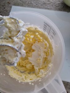 Klop de roomkaas los in een aparte kom en meng dit vervolgens onder het boter-suiker mengsel.