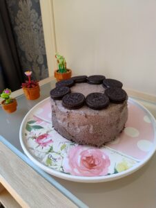 Deze taart is een taart ontsproten aan mijn gedachten als mijn eigen verjaardagstaart. Diep heb ik er over na moeten denken waar ik zin in had. Voor mij mogen verjaardagstaarten chocoladerig en indulgent zijn. Ik denk dat ik nog nooit een fruitgerelateerde taart voor mijn verjaardag heb gemaakt. Ik wou dus iets met chocolade maken, maar dan was de vraag hoe ik die moest afwerken en ik miste in mijn gedachten nog iets van een extra textuur. Er moest een extra crunch komen. Dus was de vraag welke crunchy dingen kan ik toevoegen. Bam! Oreokoekjes en zo kwam ik ook tot de oreofrosting. Resultaat een intense chocoladetaart/cake, hoe je het ook wilt noemen. Afgewerkt met een roomkaas/boter frosting met oreo en bovenop extra oreokoekjes voor die extra textuur.