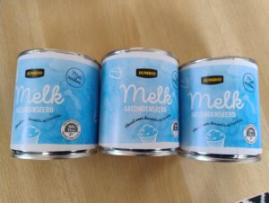 Kies het aantal blikjes gecondenseerde melk dat je wilt koken. Ik kies meestal voor drietal blikjes zodat ik dulce de leche op voorraad heb. Verwijder op voorhand het papier dat rond de blikjes zit, anders heb je na 2-3 uur koken een papierprut in je pot zitten. 😅