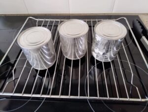 Haal na het koken de blikjes voorzichtig uit het water en laat afkoelen.