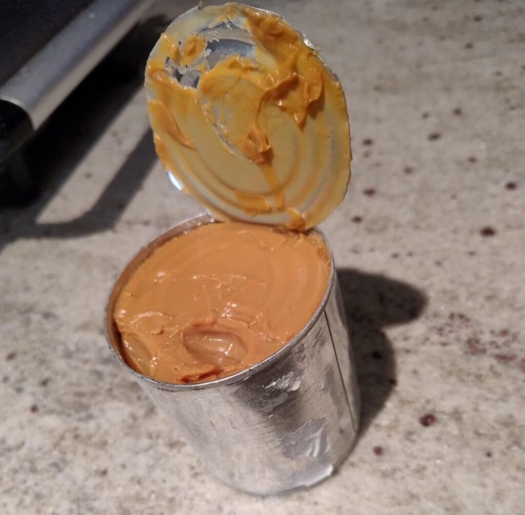 Als je een blikopener gebruikt, denk er dan aan om deze niet ondersteboven te gebruiken. Dan komt je dulce de leche er langs de verkeerde kant uit. 🤦♀️