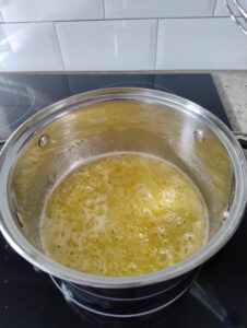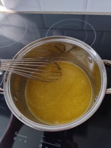 Als alle boter gesmolten is voeg je het citroensap (165 ml) toe.
