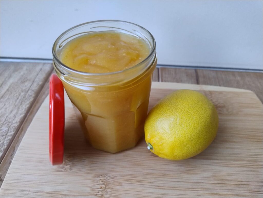 Met dit recept kan je een 1 potje (in mijn geval een oud confituurpotje, nu proper uiteraard, waar 450 g confituur in zat) vullen met lemon curd. Mea culpa de lemon curd zelf heb ik niet gewogen. 🙆♀️