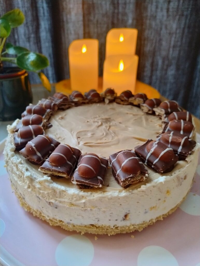 De hoeveelheden voor de chocoladeganache in het recept zijn genoeg om een volledige cake mee te te bedekken en niet zoals op de foto maar een halve cake.😅