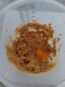 2. Meng de 2 soorten suiker, mix hier vervolgens de boter onder.