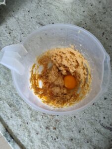 3. Voeg het ei toe en mix tot het een luchtige massa vormt.