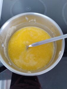 Normaal ben ik ook fan van boter te smelten in de microgolfoven, maar niet voor deze hoeveelheid. -