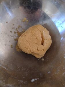 Meng de 2 soorten suiker en de bloem en voeg vervolgens de koude boter toe in blokjes. Meng met je handen tot de ingrediënten samenkomen in een deegbal. Laat het deeg 30 minuten -1 uur rusten in de koelkast.